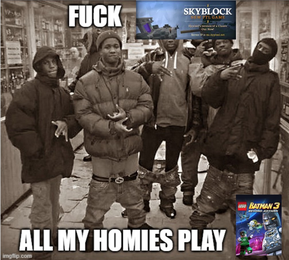 Use kapwing to discover create and share trending memes and posts with your friends and family. Memes i watch will all my homies thank you for watching my memes compilation like the video if you enjoyed and subscribe for more. Fuck x all my homies use y refers to a series of snowclone memes based on a photograph of six men wearing sagging pants and making gang hand signs.