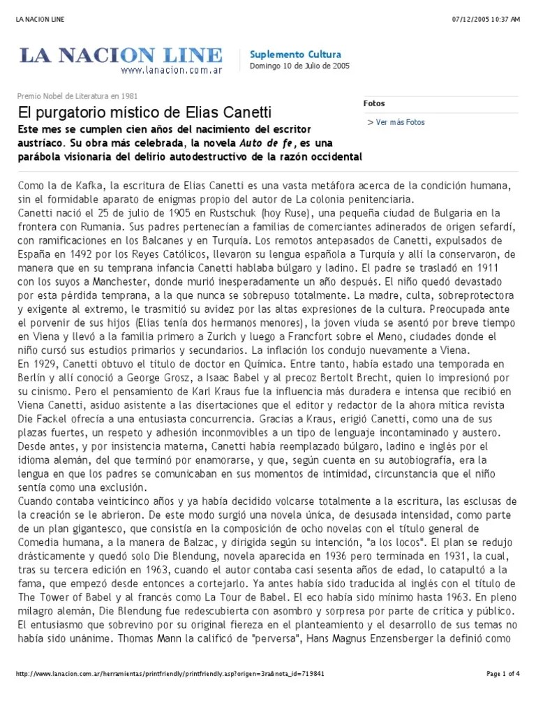 Elias Canetti Mistico Novelas Ficcion Y Literatura Prueba