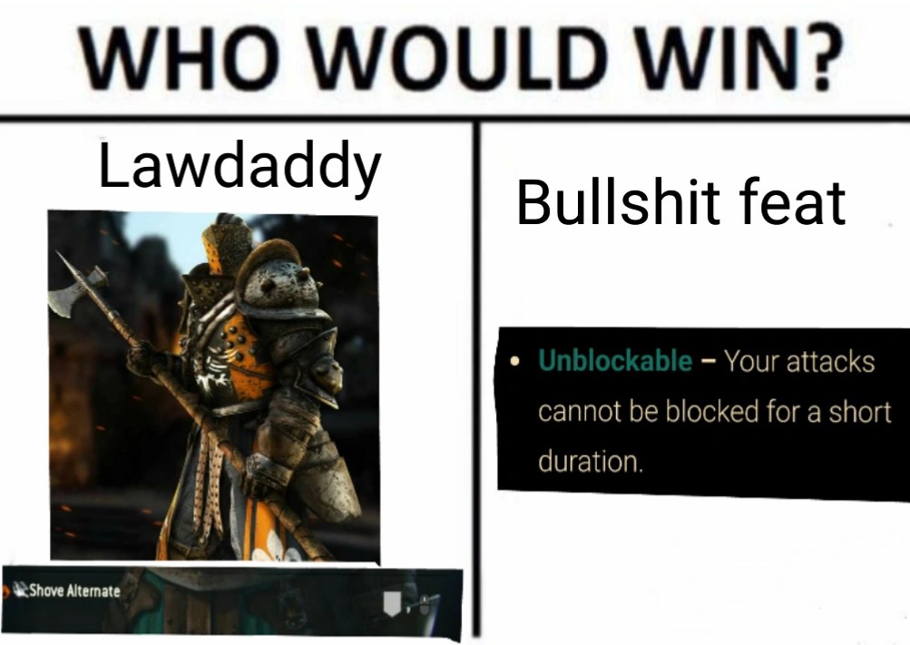 Welcome to the meme corner of r forhonor. No titles as meme captions. Template memes are also not allowed.